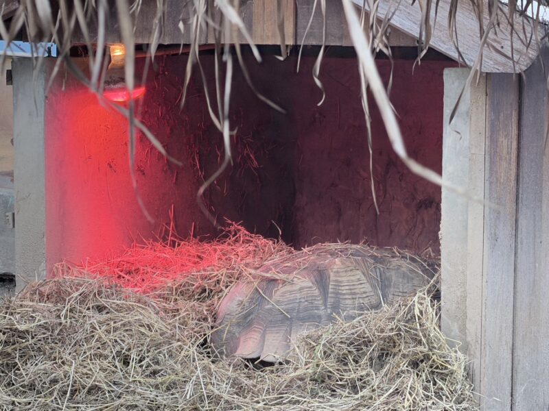 4.จัดทำจุดหลบลมหนาว จัดเตรียมซุ้มหรือบ้านกำบังลมในคอกต่าง ๆ โดยเฉพาะสัตว์ที่ต้องการการดูแลเป็นพิเศษ เช่น เต่าซูลคาตา