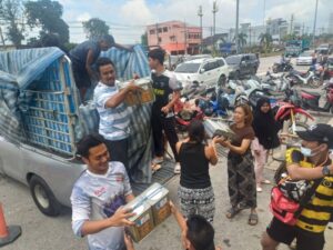 ปทุมธานี – ชาวคลองสิบสามร่วมนำสิ่งของช่วยเหลือชาวใต้ นายสุพจน์ มูนิคม รองนายก อบต.บึงคอไห อ.ลำลูกกา จ.ปทุมธานี