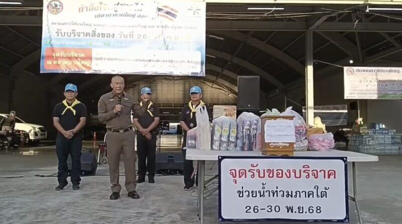 ผกก.สภ.บางใหญ่ ร่วมกับภาคเอกชน ตั้งจุดรับบริจาค ช่วยเหลือผู้ประสบภัยภาคใต้