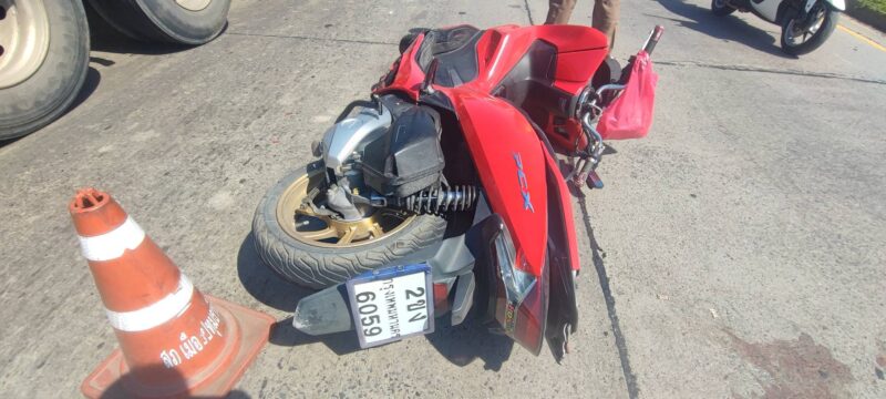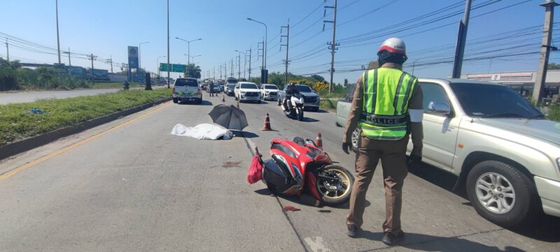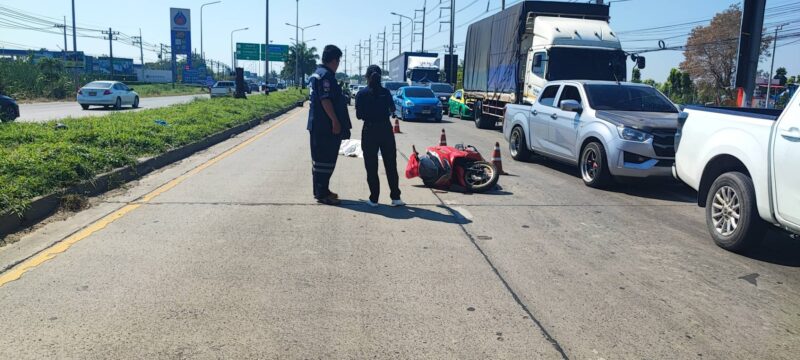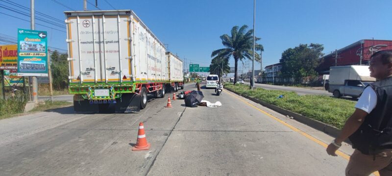 ปทุมธานี2สาวขับจยย.เฉี่ยวชนรถเทเลอร์บรรทุกคอนเทนเนอร์ส่งของบาดเจ็บ1ตาย1