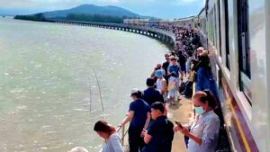 ลพบุรี – คึกคักนักท่องเที่ยวจำนวนมากแห่จองตั๋วรถไฟลอยน้ำเขื่อนป่าสักฯ ข้ามปี