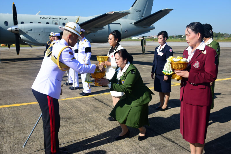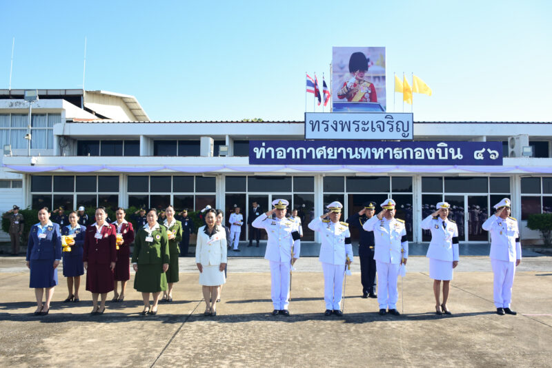 ในการนี้ คุณ นงนุช วัชรจิตบวร ประธานสมาคมแม่บ้านทหารบก สาขามณฑลทหารบกที่ 39 ได้​ถวายมาลัยข้อพระกร และกระเช้าของถวาย (ของฝากประจำจังหวัดพิษณุโลก) ให้แก่ผู้แทนพระองค์ ณ อาคารท่าอากาศยานทหาร กองบิน 46 อำเภอเมืองพิษณุโลก จังหวัดพิษณุโลก