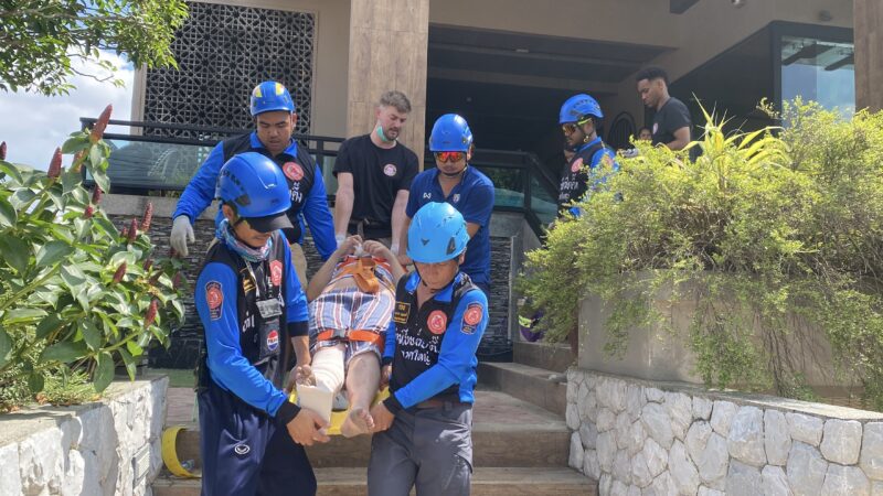เนื่องจากจุดที่ตกลงไปค้างมีความสูงจากพื้นถนนประมาณ 10 เมตร และยากต่อการเข้าถึง เจ้าหน้าที่กู้ภัยจึงต้องใช้ความระมัดระวังเป็นพิเศษ ด้วยการใช้เชือกโรยตัวลงไปรับตัวผู้บาดเจ็บ ก่อนจะใช้เชือกดึงร่างขึ้นมา จากนั้นจึงทำการปฐมพยาบาลเบื้องต้นและรีบนำตัวส่งรักษาต่อที่โรงพยาบาลมหาลัยสงขลานครินทร์ (มอ.) หาดใหญ่