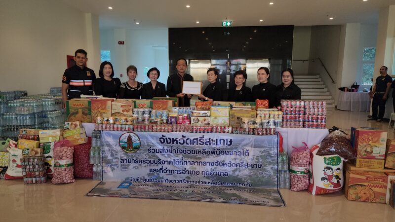จังหวัดศรีสะเกษ รวมน้ำใจซับน้ำตาชาวใต้ เปิดรับบริจาคสิ่งของเครื่องใช้ที่จำเป็น ข้าวสาร อาหารแห้ง พริก – หอม – กระเทียม ยารักษาโรค แป้งนาคา ผ้าอนามัย น้ำดื่ม รวบรวมทั้งที่ ปภ.จังหวัด และปกครองอำเภอ- จังหวัด ทั้ง 22 อำเภอ คุณแม่โฆษกรัฐบาล นำชมรมแม่ดีเด่นแห่งชาติ ร่วมมอบเงินสด