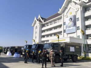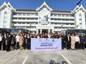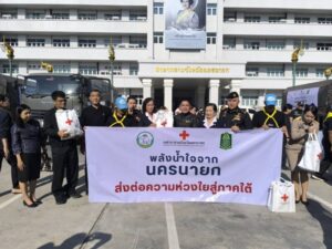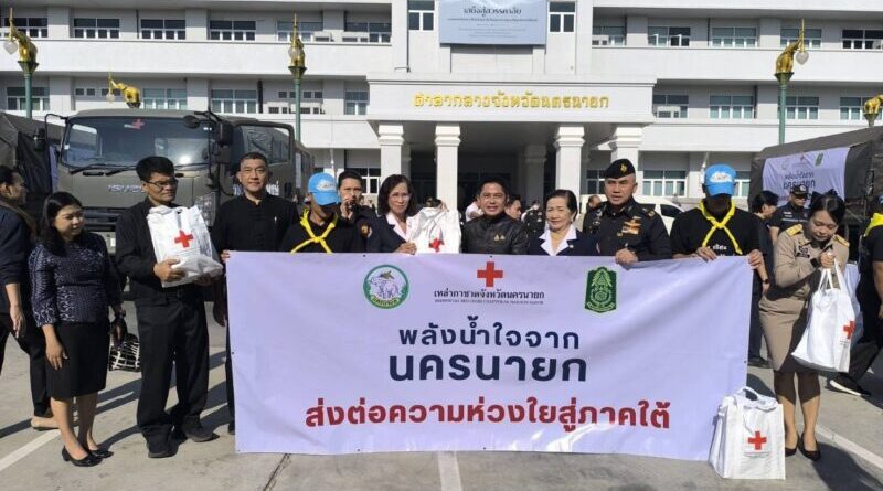 นครนายก – จังหวัดนครนายก ร่วมกับเหล่ากาชาดจังหวัดนครนายก และ ททบ. 12 บริษัทอึ้งฮวด จัดพิธีส่งมอบสิ่งของและปล่อยขบวนรถบรรทุกไปยังผู้ประสบอุทกภัยทางภาคใต้