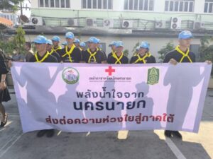 ด้วยจังหวัดนครนายก เหล่ากาชาดจังหวัดนครนายก ผู้บัญชาการมณฑลทหรบกที่ 12 และผู้บริหารบริษัท อึ้งฮวด ทั้ง 6 สาขา กำหนดจัดพิธีส่งขบวนรถเพื่อส่งมอบสิ่งของอุปโภคบริโภคไปยังผู้ประสบอุทกภัยทางภาคใต้ ที่เกิดเหตุการณ์อุกทกภัยในภาคใต้นับเป็นภัยพิบัติที่ส่งผลกระทบต่อพี่น้องประชาชนในวงกว้าง ทำให้เกิดความเดือดร้อนและต้องการความช่วยเหลืออย่างเร่งด่วน ซึ่งในกิจกรรมนี้แสดงให้เห็นถึงพลังแห่งความเมตตาและน้ำใจของชาวจังหวัดนครนายก ที่ระดมความช่วยเหลือร่วมบริจาคอาหารและสิ่งของ และถุงยังชีพ มูลค่ารวม 1,200,000 บาท เพื่อช่วยเหลือพี่น้องทางภาคใต้