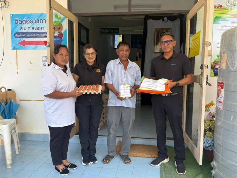 เพื่อช่วยเหลือเกษตรกรผู้ประสบภัยที่มาติดต่อราชการ ณ ศูนย์บริการประชาชน ส.ป.ก.สงขลา และเกษตรกรผู้ประสบภัยในพื้นที่เขตปฏิรูปที่ดินอำเภอหาดใหญ่ อำเภอรัตภูมิ และอำเภอสะเดา จังหวัดสงขลา