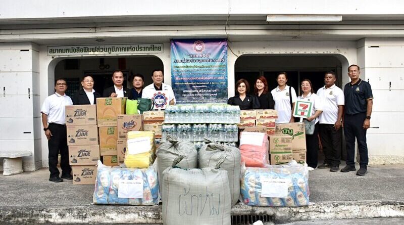 สมาคมหนังสือพิมพ์ส่วนภูมิภาคแห่งประเทศไทย (สภท. 60 ปี) ได้เปิดรับบริจาคเฉพาะในกลุ่มสมาชิกและผู้ที่รู้จักคุ้นเคย เพื่อร่วมกันบรรเทาความเดือดร้อนของผู้ประสบภัยในครั้งนี้ โดยสิ่งของทั้งหมดจะถูกส่งมอบผ่าน ดร.นภินทร ศรีสรรพางค์ รัฐมนตรีประจำสำนักนายกรัฐมนตรี ซึ่งมอบหมายให้ ดร.วีณา ศรีสรรพางค์ ประธานที่ปรึกษาชมรมชาวใต้ราชบุรี เป็นผู้แทนรับมอบสิ่งของดังกล่าว และเพื่อจัดส่งต่อด้วยรถบรรทุกของตลาดศรีเมืองราชบุรี ไปยังพื้นที่ประสบภัยในภาคใต้