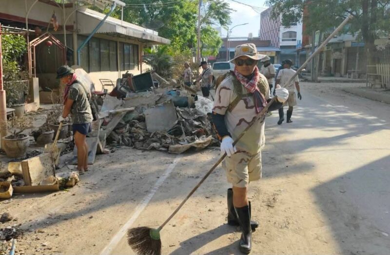 – ทำความสะอาดและฟื้นฟูสภาพบ้านเรือนของประชาชนที่ได้รับความเสียหายจากน้ำท่วม – เคลียร์เส้นทางและทำความสะอาดถนนในพื้นที่ที่กองอำนวยการร่วมกำหนด เพื่อให้การสัญจรกลับมาเป็นปกติโดยเร็วผลการปฏิบัติภารกิจของกำลังพล อส.ชลบุรี ตลอดช่วงเวลาที่ผ่านมาเป็นไปด้วยความเรียบร้อยและมีประสิทธิภาพ สามารถช่วยบรรเทาความเดือดร้อนให้กับพี่น้องประชาชนในพื้นที่จังหวัดสงขลาได้อย่างเป็นรูปธรรม แสดงให้เห็นถึงความพร้อมและจิตวิญญาณในการเสียสละเพื่อส่วนรวมของกองอาสารักษาดินแดนจังหวัดชลบุรี