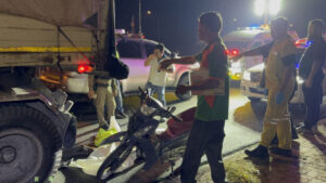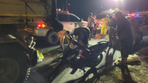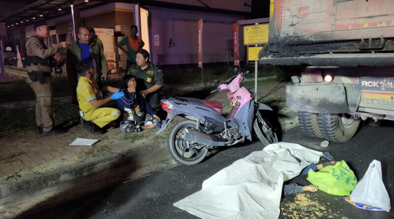 สลดกลางดึก สาว 27 ขี่มอไซค์ชนท้ายรถพ่วงบรรทุกยางมะตอยจอดข้างทาง ดับคาที่