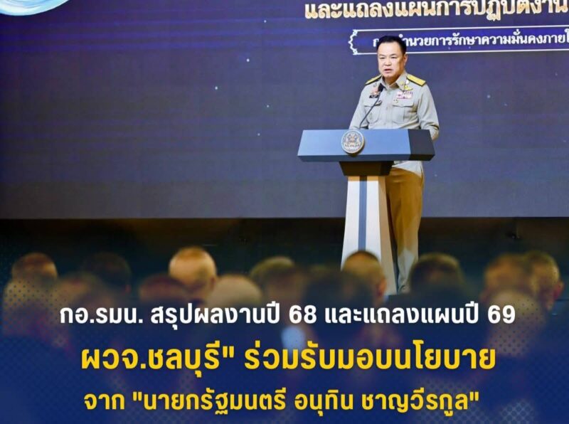 กอ.รมน.สรุปผลงานปี 68 และแถลงแผนปี 69 “นายนริศ นิรามัยวงศ์ผวจ.ชลบุรี” ร่วมรับมอบนโยบายจาก “นายกรัฐมนตรี อนุทิน ชาญวีรกูล” ณ ตึกสันติไมตรี (อาคารหลังนอก) ทำเนียบรัฐบาล กองอำนวยการรักษาความมั่นคงภายในราชอาณาจักร (กอ.รมน.) ได้จัดงานสรุปผลการปฏิบัติงานประจำปีงบประมาณ พ.ศ. 2568 และแถลงแผนการปฏิบัติงานประจำปี พ.ศ. 2569 อย่างยิ่งใหญ่ โดยได้รับเกียรติจาก นายอนุทิน ชาญวีรกูล นายกรัฐมนตรี ในฐานะผู้อำนวยการรักษาความมั่นคงภายในราชอาณาจักร (ผอ.รมน.) เป็นประธานในพิธีและมอบนโยบายสำคัญในการนี้ นายนริศ นิรามัยวงศ์ผู้ว่าราชการจังหวัดชลบุรีในฐานะผู้อำนวยการรักษาความมั่นคงภายในจังหวัดชลบุรี (ผอ.รมน.จังหวัด ช.บ.)