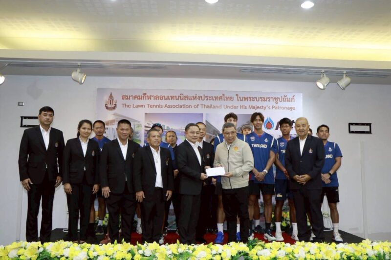 จากนั้น ดร.ณัฏฐ์ ธีรณัฐสุภานนท์ ได้มอบกระเช้าผลไม้ และเงินสนับสนุนการฝึกซ้อมจำนวน 20,000 บาท พร้อมให้โอวาทแก่นักกีฬาเทนนิสทีมชาติไทย