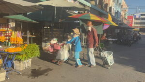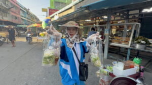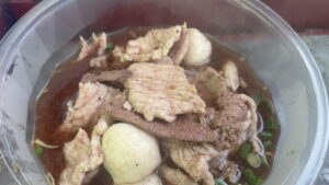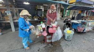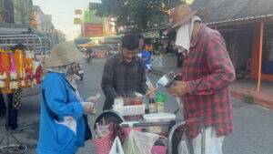วันที่ 4 ธ.ค. 68 ที่บริเวณตลาดสดอ่างทอง ตำบลตลาดหลวง อำเภอเมืองอ่างทอง พบแม่ค้าก๋วยเตี๋ยวใช้รถเข็นขายก๋วยเตี๋ยวหมูน้ำตก และก๋วยเตี๋ยวไก่มะระ เป็นรถเข็นขนาดเล็ก (มินิ) สีชมพู ขนาดกว้างยาวประมาณ 90 เซนติเมตร และมีล้อ 4 ล้อ เพื่อใช้เข็น ตรงกลางวางเตาถ่านมีหม้อก๋วยเตี๋ยวขนาดเล็ก มีการจัดวางเส้นก๋วยเตี๋ยว ผัก เนื้อหมู ไก่ ลูกชิ้น พร้อมเครื่องปรุงก๋วยเตี๋ยวไว้ในรถเข็นขนาดเล็ก บริการลูกค้าไปทั่วตลาด ขายให้กับบรรดาแม่ค้า และลูกค้าที่มาจับจ่ายซื้อของภายในตลาด เป็นทั้งการสร้างจุดขาย และสร้างความสะดวกสบายให้แก่ลูกค้า ด้วยการบริการแบบเข้าถึงที่ หนึ่งเดียวในอ่างทอง ไม่หวั่นทางเล็กแคบแค่ไหนก็ไปได้ ขวัญใจคนทำกินอิ่มจุใจจ่ายแค่ 30 บาท ใคร ๆ ก็เรียกหาแต่ร้าน ก๋วยเตี๋ยวมินิ