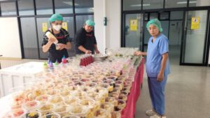 นอกจากอาหารคาวแล้ว ท่านเจ้าคุณแจ้ยังได้เมตตาเลี้ยงขนมหวานอีกจำนวน 1,000 ถ้วย เพื่อเป็นขวัญและกำลังใจแก่บุคลากรทางการแพทย์ โดยมี นายแพทย์เสาร์ ปัญจพงษ์ ผู้อำนวยการโรงพยาบาลบางพลี พร้อมทีมแพทย์ พยาบาล และเจ้าหน้าที่ ให้การต้อนรับอย่างอบอุ่น