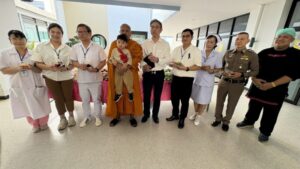 เจ้าคุณแจ้ เมตตาเลี้ยงก๋วยเตี๋ยว 1,000 ถ้วย แก่ทีมแพทย์ รพ.บางพลี ถวายเป็นพระราชกุศลแด่ “พระพันปีหลวง”