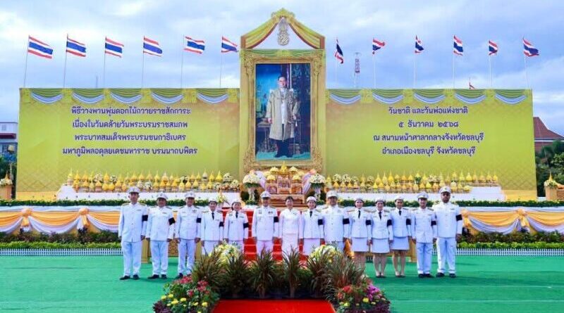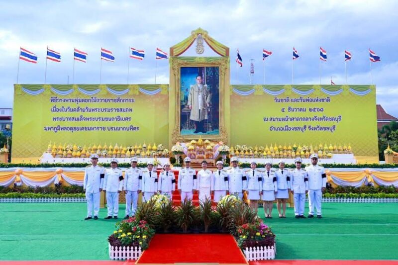 ชลบุรีจัดพิธีวางพานพุ่มดอกไม้ถวายราชสักการะ 5 ธันวาคม ประชาชนทุกภาคส่วนร่วมแสดงความจงรักภักดี น้อมรำลึกในพระมหากรุณาธิคุณในหลวงรัชกาลที่ 9