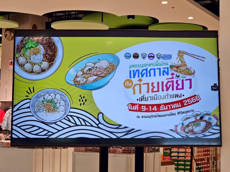 ดร.ธิติ มหบุญพาชัย ประธานหอการค้าจังหวัดกำแพงเพชร กล่าวว่า การจัดกิจกรรม“มหกรรมอาหารพื้นบ้าน เทศกาลกินก๋วยเตี๋ยว เที่ยวเมืองกำแพงเพชร“ จัดขึ้นเป็นปีที่ 25 ที่หอการค้าได้ดำเนินการมาอย่างต่อเนื่อง ทั้งนี้เพื่อเป็นการกระตุ้นเศรษฐกิจภายในจังหวัดกำแพงเพชร เพราะจากการจัดกิจกรรมที่ผ่านมาในทุกปีจะได้รับความสนใจจากพี่น้องประชาชนเป็นอย่างดี สามารถสร้างกระแสเงินหมุนเวียนของเม็ดเงินได้เป็นที่น่าพอใจ และจากการสำรวจของสำนักงานสถิติจังหวัดพบว่างาน”มหกรรมอาหารพื้นบ้าน เทศกาลกินก๋วยเตี๋ยว เที่ยวเมืองกำแพงเพชร” เป็นงานที่ประชาชนชื่นชอบมากที่สุดเป็นอันดับหนึ่งของจังหวัด ดังนั้นหอการค้าจังหวัดกำแพงเพชรพร้อมหน่วยงานพันธมิตรทั้งภาครัฐและเอกชนที่ร่วมสนับสนุนรวมถึงองค์การบริหารส่วนจังหวัดกำแพงเพชรและกลุ่มผู้ประกอบการรุ่นใหม่ YEC จึงได้จัดกิจกรรมงานนี้ขึ้นมา โดยในปีนี้กำหนดขึ้นในระหว่างวันที่ 9 ถึง 14 ธันวาคม 2568 เป็นปีที่ 25 รวมระยะเวลา 6 วัน กิจกรรมจะเริ่มตั้งแต่ 17.00 น. ไปจนถึง 23.00 น. ของทุกวัน ณ ภายในลานอนุรักษ์วัฒนธรรมไทยสิริจิตอุทยาน เทศบาลเมืองกำแพงเพชร ซึ่งจุดเด่นกิจกรรมภายในงานที่จะมีร้านก๋วยเตี๋ยวที่ขึ้นชื่อและอาหารพื้นบ้านของจังหวัดกำแพงเพชรแล้ว ยังได้มีกิจกรรมการแข่งขัน Beyblade X_One Bey Attacker และการแข่งขันฟุตซอลชิงแชมป์หอการค้าจังหวัดกำแพงเพชรจึงเงินรางวัลรวมกว่า 50,000 บาท อีกด้วย นอกจากนั้นบนเวทีกลางยังมีการแสดงกิจกรรมของเด็กและเยาวชนคนรุ่นใหม่ให้ชมทุกค่ำคืนอีกด้วย