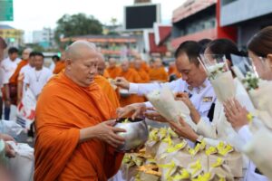 จ.จันทบุรีพสกนิกรทุกหมู่เหล่าร่วมทำบุญตักบาตรและวางพานพุ่ม น้อมรำลึกในพระมหากรุณาธิคุณ “ในหลวง ร.9” เนื่องในวันคล้ายวันพระบรมราชสมภพ
