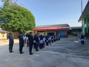 โดย จ.ส.อ.พลากร ใสสะอาด ได้นำนักเรียนร่วมร้องเพลงชาติ และเชิญธงชาติขึ้นสู่ยอดเสา พร้อมทั้งได้ ปลูกฝังอุดมการณ์ความรักชาติ และ สร้างความรับรู้เรื่องโทษของยาเสพติด เพื่อให้เยาวชนตระหนักถึงภัยร้ายและห่างไกลจากสิ่งเสพติด