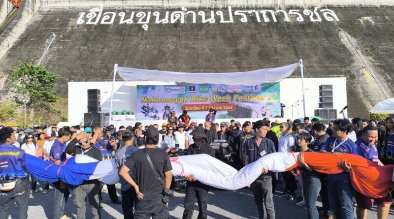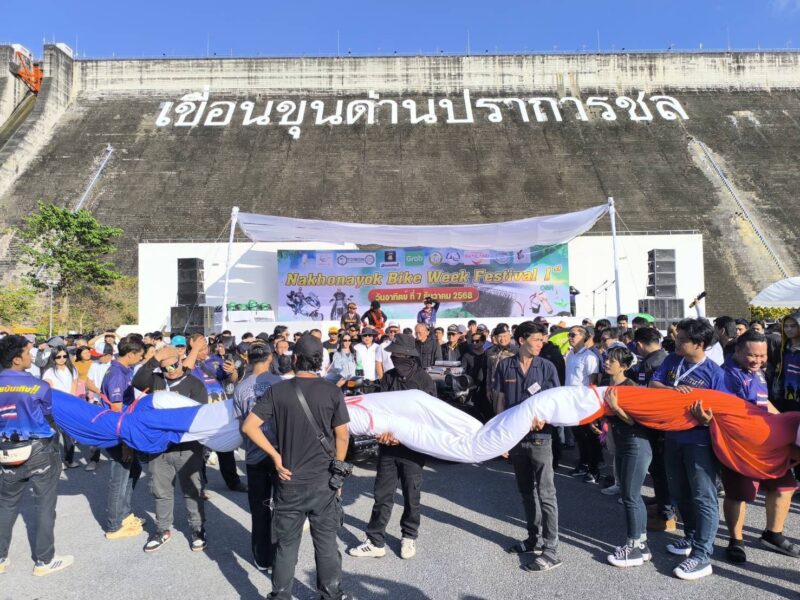 นครนายก – สมาคมส่งเสริมการท่องเที่ยวนครนายก จัดกิจกรรมส่งเสริมการท่อง เที่ยวจังหวัดนครนายก Nakhonnayok Bike Week Festival 1 แปรอักษร อัญเชิญธงชาติไทยผืนใหญ่ยาว 100 เมตรกว้าง 20 เมตร