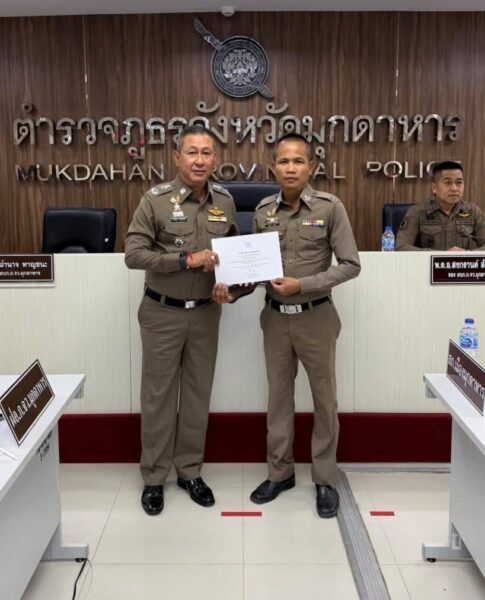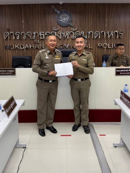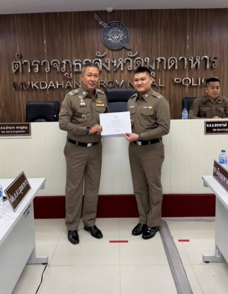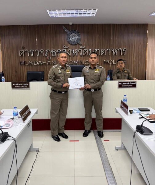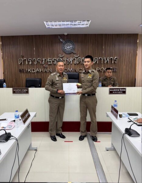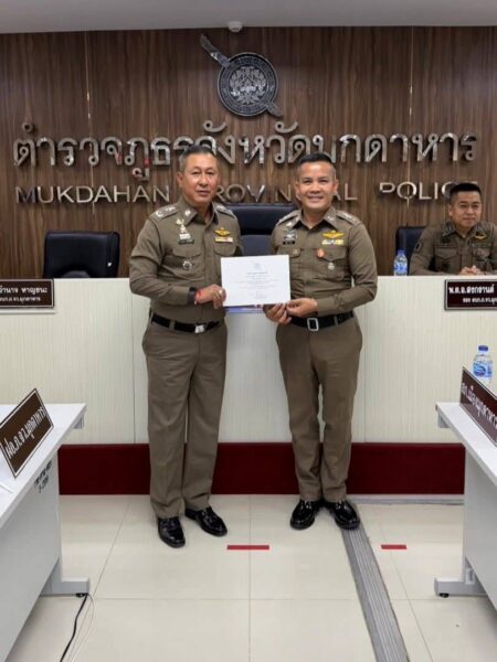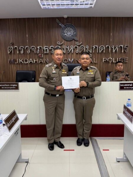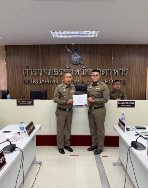ภ.จว.มุกดาหาร พิธีมอบใบประกาศนียบัตร ให้แก่ข้าราชการตำรวจ ผู้สำเร็จการฝึกอบรมหลักสูตรด้านการสืบสวนสอบสวนในคดีอาญารุ่นที่ 13