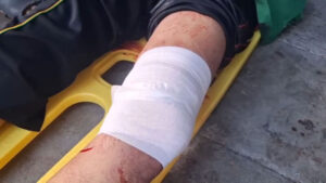 เล่นพิเรนทร์ นักเรียนชายโรงเรียนดัง เล่นต่อสู้เกิดพลาดมีดจิ้มขาเพื่อนจนต้องหามส่งโรงพยาบาล