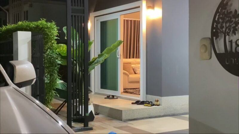 จากการสอบถาม รปภ.ของหมู่บ้าน ได้เล่าว่า เมื่อช่วงเย็นที่ผ่านมาทางญาติผู้เสียชีวิตได้โทรศัพท์มาที่ป้อม รปภ.ของหมู่บ้าน ถามหาบ้านผู้เสียชีวิตว่า บ้านวาสนาอยู่หลังไหน ตนจึงได้บอกกลับไปว่าไม่แน่ใจเหมือนกันว่าอยู่หลังไหน พอสักพักทางญาติผู้เสียชีวิตได้เดินทางมาถึงหมู่บ้าน และแจ้งว่าติดต่อกับทางผู้เสียชีวิตไม่ได้มา 24 ชม.แล้ว เนื่องจากทางฝ่ายหญิงได้โทรศัพท์มาที่ญาติและบอกว่าทะเลาะมีปากเสียงกันขั้นรุนแรง