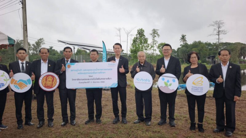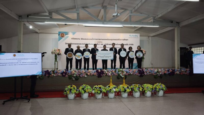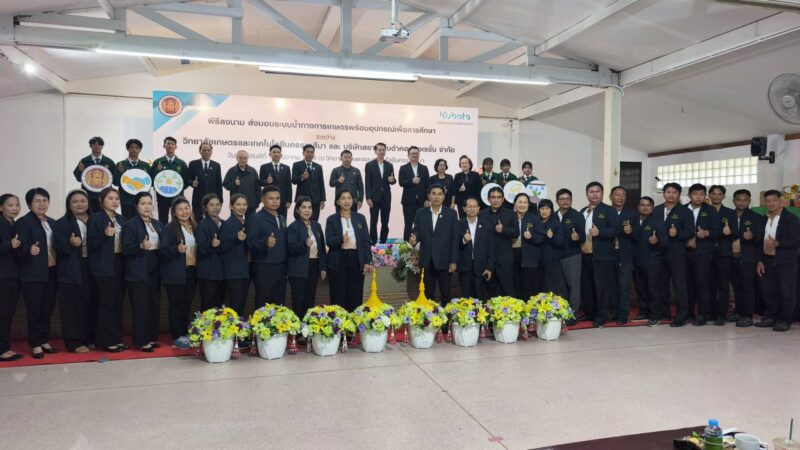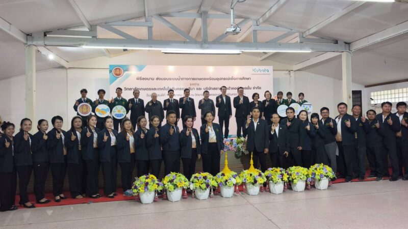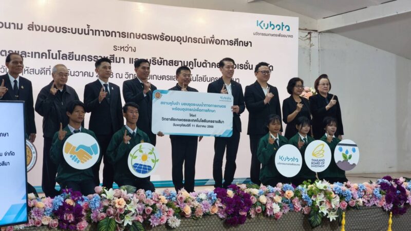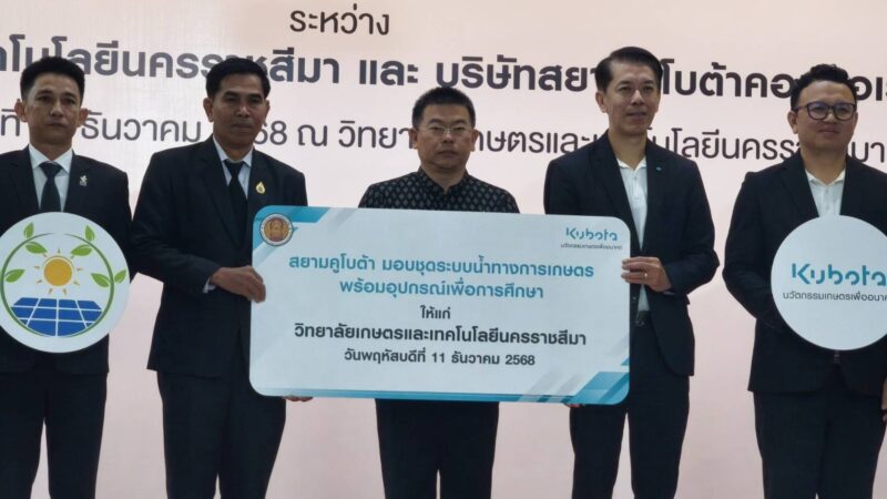 วันที่ 12 ธันวาคม 2568 ผู้สื่อข่าวรายงานว่า ที่วิทยาลัยเกษตรและเทคโนโลยีนครราชสีมา อ.สีคิ้ว จ.นครราชสีมา มีพิธีลงนามส่งมอบชุดระบบน้ำทางการเกษตร โครงการระบบน้ำทางการเกษตรพร้อมอุปกรณ์เพื่อการศึกษา ระหว่าง บริษัทสยามคูโบต้าคอร์ปอเรชั่น จํากัด ร่วมกับ วิทยาลัยเกษตรและเทคโนโลยีนครราชสีมา โดยมี นายกิตติศักดิ์ ธีระวัฒนา รองผู้ว่าราชการจังหวัดนครราชสีมามา ดร.รอยล จิตรดอน กรรมการและเลขาธิการมูลนิธิอุทกพัฒน์ นายสุชาติ จำปาโพธิ์ ผอ.วิทยาลัยเกษตรและเทคโนโลยีนครราชสีมา นายดุสิต สะดวก ผอ.สถาบันการอาชีวะศึกษาเกษตรภาคตะวันออกเฉียงเหนือ และ นางสาวปุณยนุช มีกำลัง ผอ.ศูนย์เศรษฐกิจการลงทุน ภาคที่ 2 (BOI) ร่วมเป็นสักขีพยาน