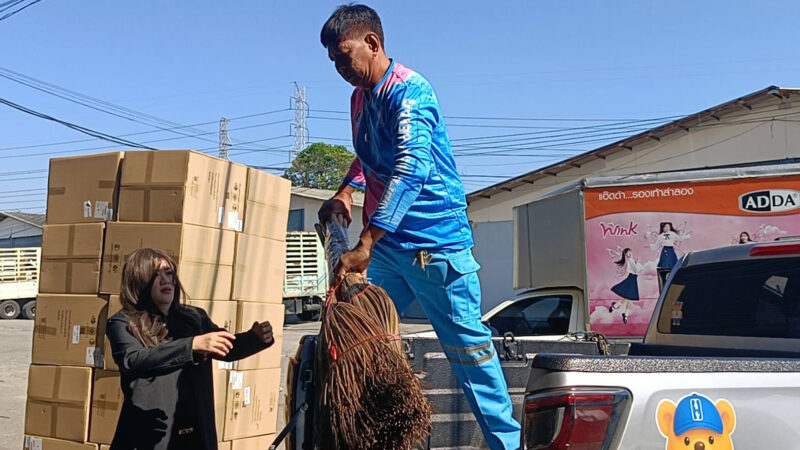 อุปกรณ์ทั้งหมดถูกจัดส่งผ่านขนส่งเอกชน เพื่อกระจายไปยังพื้นที่ที่ได้รับผลกระทบจากน้ำท่วม ให้ประชาชนได้นำไปใช้ฟื้นฟูและทำความสะอาดบ้านเรือนหลังระดับน้ำลดลง