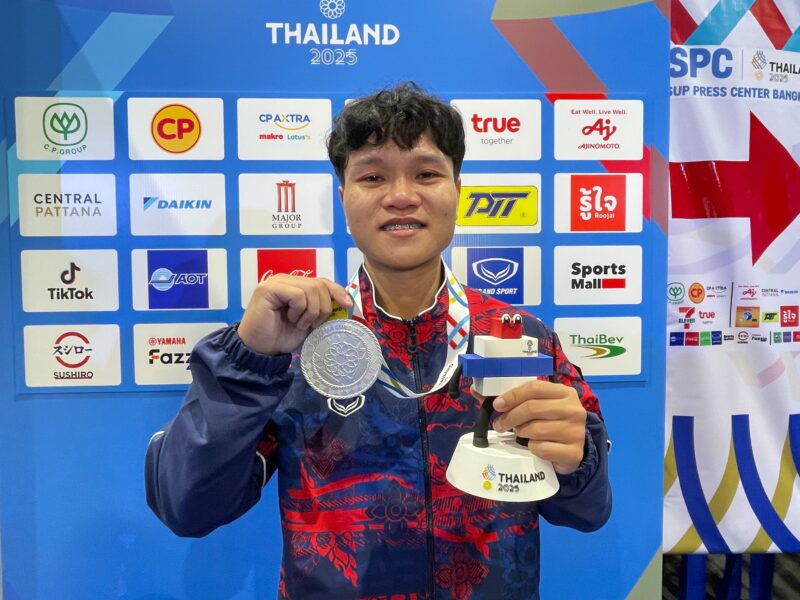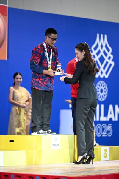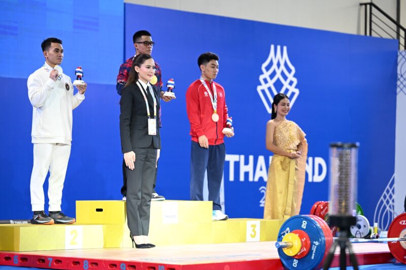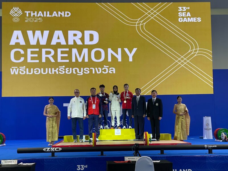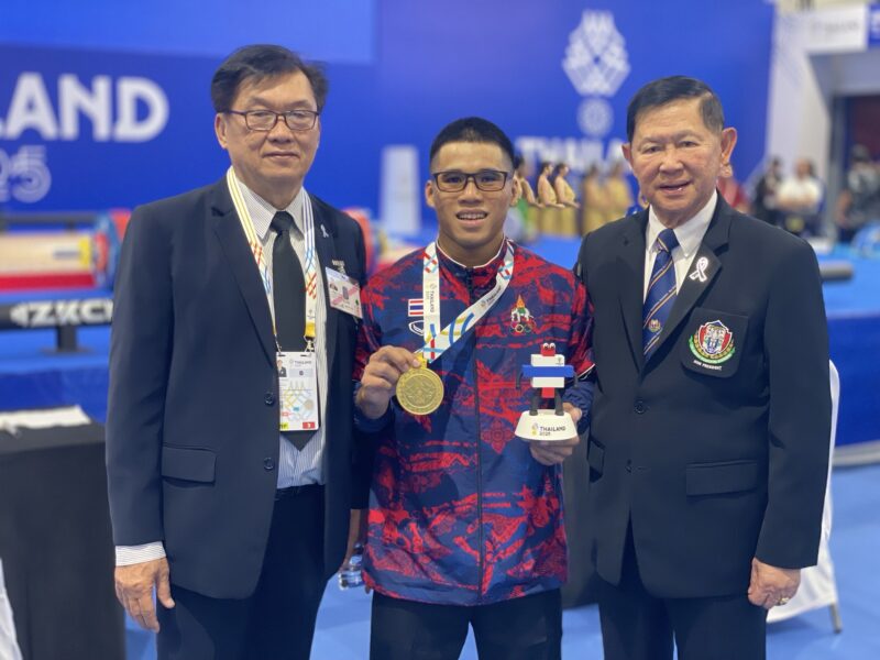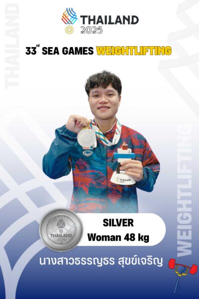 การแข่งขันกีฬายกน้ำหนัก มหกรรมกีฬาซีเกมส์ ครั้งที่ 33 ที่โรงยิมเนเซียม โรงเรียนกีฬาจังหวัดชลบุรี ประเดิมชิงชัยวันแรก วันที่ 13 ธันวาคม 2568 เริ่มด้วยรุ่น 48 กิโลกรัมหญิง ทีมไทยส่ง “อาร์ม” ธรรญธร สุขข์เจริญ ดีกรี 1 เหรียญเงิน และ 1 เหรียญทองแดง รายการชิงชนะเลิศแห่งโลก เมื่อเดือนตุลาคม ที่ผ่านมา ขึ้นเวทีรุ่น 48 กิโลกรัม หญิง มีจอมพลังชิงชัย 6 คน (มอบเหรียญรางวัลเฉพาะน้ำหนักรวม) ปรากฏว่า ท่าสแนทช์ ธรรญธร เรียกเหล็ก 77, 80, 83 กิโลกรัม ยกผ่านรวดทั้ง 3 ครั้ง สถิติอยู่ที่ 83 กิโลกรัม/ ท่าคลีนแอนด์เจิร์ก ธรรญธร ครัั้งแรกยกผ่านที่ 98 กิโลกรัม, ครั้งที่ 2 ยกผ่านที่ 100 กิโลกรัม, ครั้งที่ 3 เรียกเหล็ก 102 กิโลกรัม ยกไม่ผ่าน ทำให้สถิติอยู่ที่ 100 กิโลกรัม ขยับน้ำหนักรวมไปอยู่ที่ 183 กิโลกรัม ประเดิมเหรียญเงินให้ทีมจอมพลังไทย