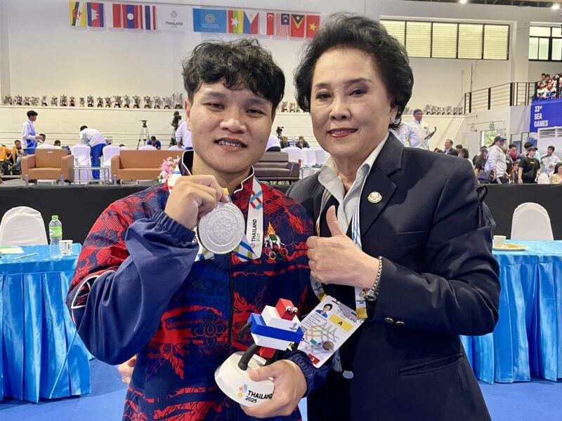 ”อาร์ม“ ธรรญธร สุขข์เจริญ ประเดิมเหรียญเงิน รุ่น 48 กิโลกรัม หญิง ในกีฬายกน้ำหนัก มหกรรมกีฬาซีเกมส์ ครั้งที่ 33 ที่โรงยิมเนเซียม โรงเรียนกีฬาจังหวัดชลบุรี