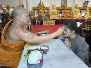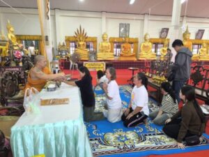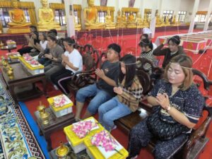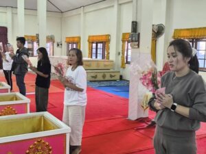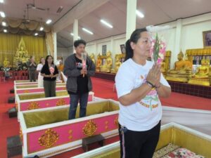 นครนายก – นักท่องเที่ยวสายมูให้ความศรัทธาเดินทางเข้าพิธีนอนโลงศพวัดหลวงพ่อปากแดงจังหวัดนครนายก