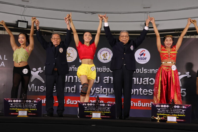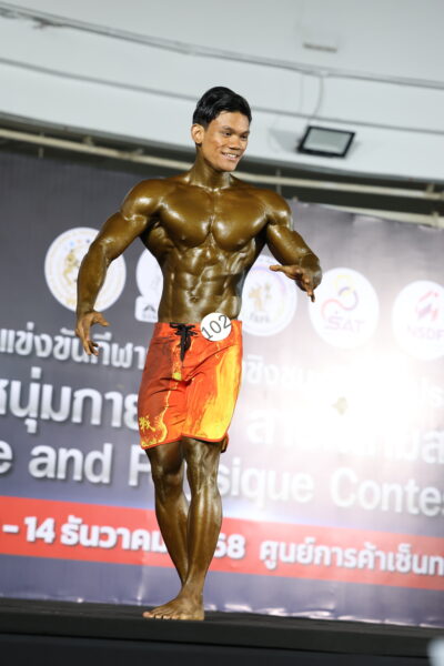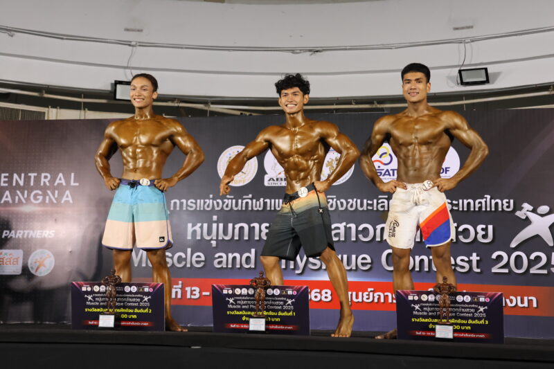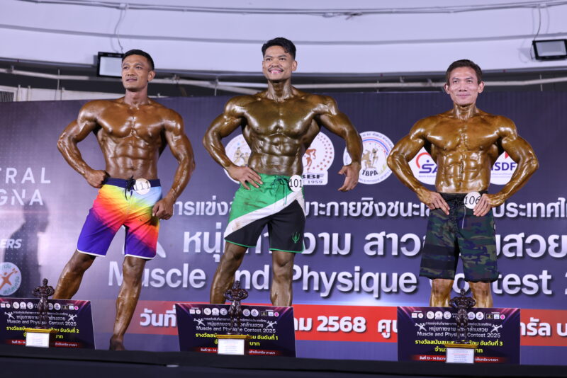 พันธวีร์ ภูมิบุตร จาก โรงเรียนศรีพฤฒา เบ่งกล้ามคว้าแชมป์ สปอร์ตฟิสิคชาย นักเรียนอายุไม่เกิน 18 ปี รุ่นทั่วไป เพาะกาย หนุ่มกายงาม สาวกล้ามสวย ขณะที่กิตติพันธ์ ขันทอง จาก นาว เวย์ โปรตีน ควง ชิดชนก อภิชาติบวรวงศ์ จีเคโอ ยิมนาสติกแอนด์ฟิตเนส คว้าแชมป์ฟิตเนสฝ่ายชายและฝ่ายหญิง