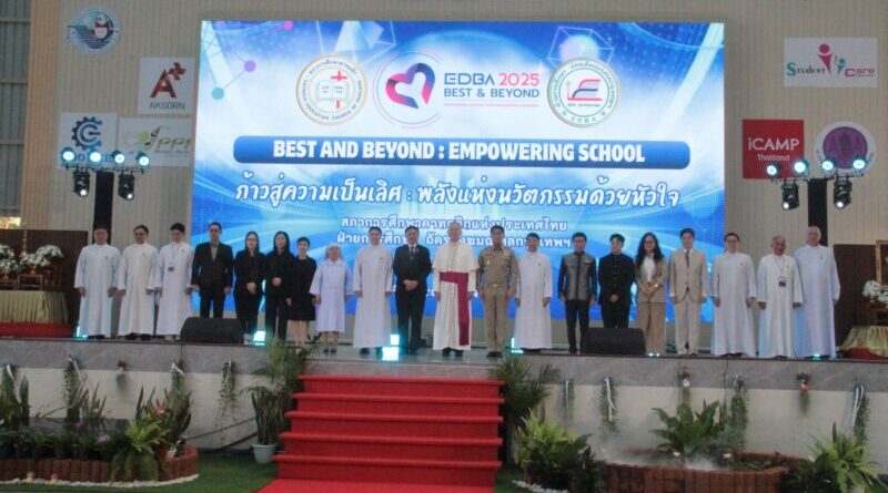 ผู้สื่อข่าวรายงานมาว่า ที่ โรงเรียนพระวิสุทธิวงส์ ถ.พหลโยธิน-ลำลูกกา ต.ลำไทร อ.ลำลูกกา จ.ปทุมธานี สภาการศึกษาคาทอลิกแห่งประเทศไทย และฝ่ายการศึกษาอัครสังฆมณฑลกรุงเทพฯ ได้ร่วมกันจัดงาน (EDBA 2025 BEST & BEYOND : Empowering School with Innovation and Heart)” ก้าวสู่ความเป็นเลิศ :พลังแห่งนวัตกรรมด้วยหัวใจ โดยได้รับเกียรติจาก พระอัครสังฆราชฟรังซิสเซเวียร์ วีระ อาภรณ์รัตน์ ประมุขแห่งอัครสังฆมณณฑลกรุงเทพ ฯ ประกอบวจนพิธีกรรม มีนายมณฑล ภาคสุวรรณ์ เลขาธิการคณะกรรมการส่งเสริมการศึกษาเอกชน ผู้แทนปลัดกระทรวงศึกษาธิการ เป็นประธานเปิดงาน บาทหลวง ดร. เอกรัตน์ หอมประทุม เลขาธิการสภาการศึกษาคาทอลิกแห่งประเทศไทย ประธานจัดงาน นายดงพล รุจิธรรมธัช รองผู้ว่าราชการจังหวัดปทุมธานี กล่าวต้อนรับ โดยซิสเตอร์มยุรา วาปีโส ผู้จัดการและผู้อำนวยการ โรงเรียนพระวิสุทธิวงส์ ให้การต้อนรับ