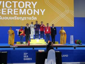 ส่วนเหรียญเงินเป็นของ นาตาสยา เบเตยอบ จากอินโดนีเซีย 218 กิโลกรัม (ท่าสแนทช์ 98 กิโลกรัม, ท่าคลีนแอนด์เจิร์ก 120 กิโลกรัม) และ เหรียญทองแดง ธิ ธัม ควง จากเวียดนาม 215 กิโลกรัม (ท่าสแนทช์ 96 กิโลกรัม, ท่าคลีนแอนด์เจิร์ก 119 กิโลกรัม)