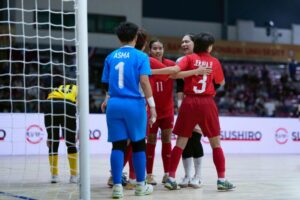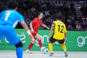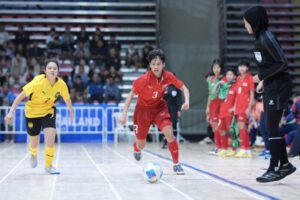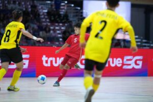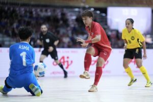 นาที 23 ฟุตซอลหญิงไทย นำห่าง มาเลเซีย เป็น 3-0 จากจังหวะยิงไกลด้วยซ้ายของ แสงระวี มีขำ เสียบสามเหลี่ยมเข้าไป