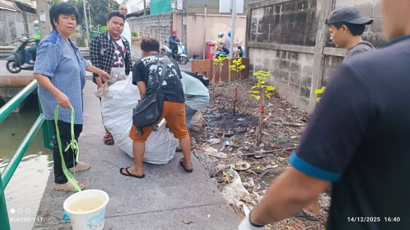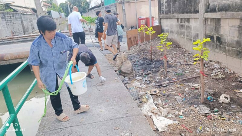 สารวัตรคลองชุมชนบลูไลท์ พร้อมด้วยคณะกรรมการชุมชนและประชาชนในพื้นที่ ร่วมแรงร่วมใจกันจัดกิจกรรมเก็บขยะและรดน้ำต้นไม้บริเวณริมคลองแจงร้อน ภายใต้โครงการ “คลองสวย น้ำใส” เพื่อฟื้นฟูสภาพแวดล้อมของแหล่งน้ำสำคัญให้กลับมาสะอาด สวยงาม และเอื้อต่อคุณภาพชีวิตของคนในชุมชน