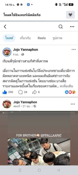 ขณะที่ “โจ้” ญาณพล ลาภอาภารัตน์ นักกีฬาโบว์ลิ่ง เหรียญทองซีเกมส์ ได้ออกมาโพสต์แสดงความในใจผ่านทางเฟซบุ๊กว่า