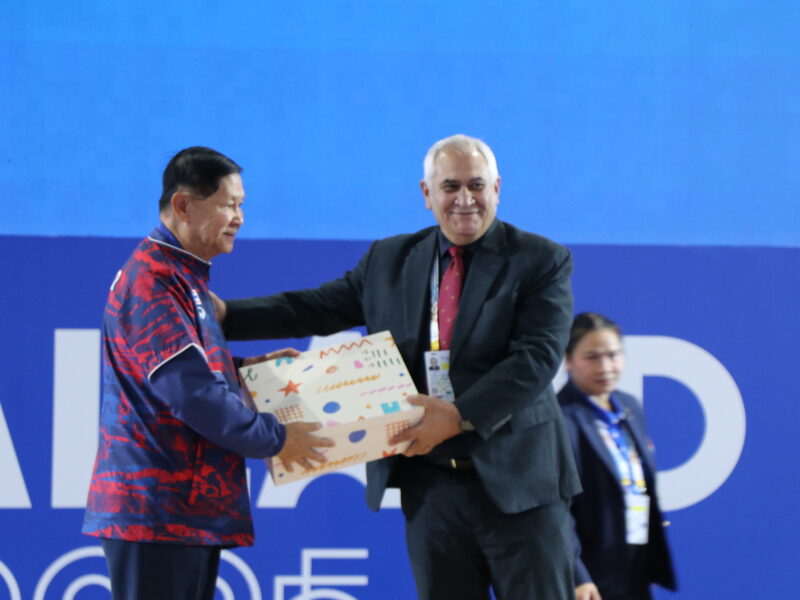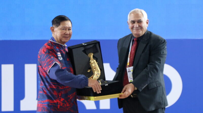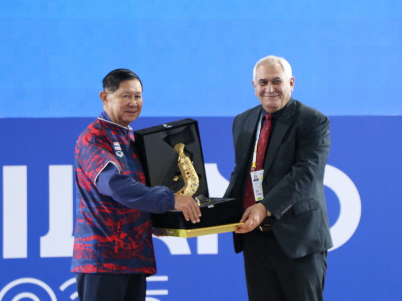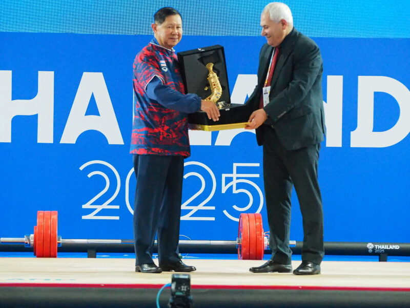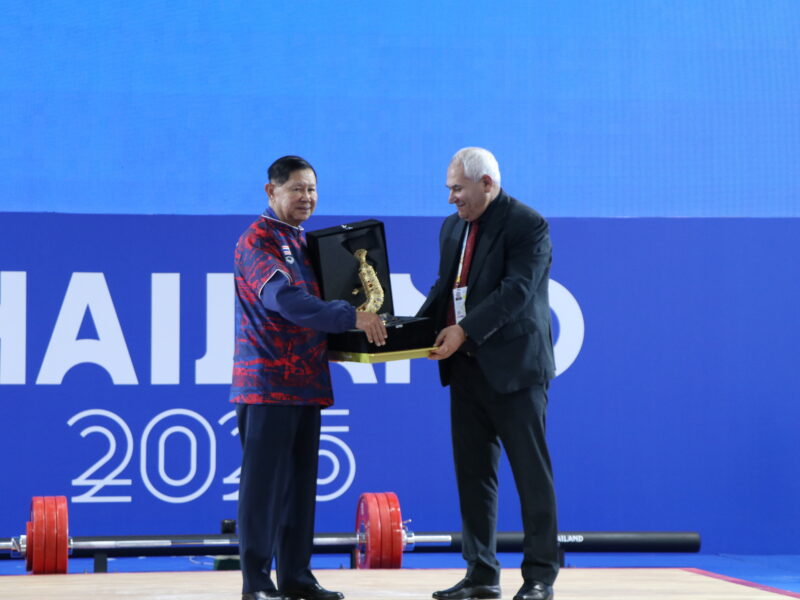 ในโอกาสนี้ พลตรี อินทรัตน์ ยอดบางเตย นายกกิตติมศักดิ์ สมาคมกีฬายกน้ำหนักสมัครเล่นแห่งประเทศไทย พร้อมด้วย ดร.นิวัตน์ ลิ้มสุขนิรันดร์ คณะกรรมการฝ่ายเทคนิค สหพันธ์ยกน้ำหนักนานาชาติ (ไอดับเบิ้ลยูเอฟ) และ ประธานสหพันธ์ยกน้ำหนักแห่งเอเชียตะวันออกเฉียงใต้ ให้การต้อนรับ นายโมฮัมเหม็ด ฮาซัน จารูด ประธานสหพันธ์ยกน้ำหนักนานาชาติ (ไอดับเบิ้ลยูเอฟ) ในโอกาสเดินทางมาเข้าชมการแข่งขันกีฬายกน้ำหนัก มหกรรมกีฬาซีเกมส์ ครั้งที่ 33 ที่โรงยิมเนเซียม โรงเรียนกีฬาจังหวัดชลบุรี โดยระหว่างพักช่วงการแข่งขันหลังจบท่าสแนทช์ รุ่น 88 กิโลกรัม ชาย นายโมฮัมเหม็ด ฮาซัน จารูด ได้มอบของที่ระลึกให้กับ พลตรี อินทรัตน์ ยอดบางเตย รวมทั้งได้ให้เกียรติขึ้นมอบเหรียญรางวัลในรุ่นดังกล่าวด้วย