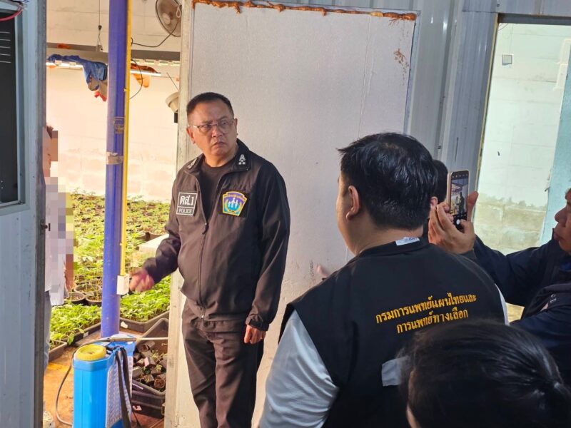 ดส.ร่วมกับกรมการแพทย์แผนไทย บุกทลายโกดังปลูกกัญชาเถื่อนยึดต้นกัญชากว่า 1,600 ต้น