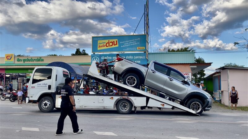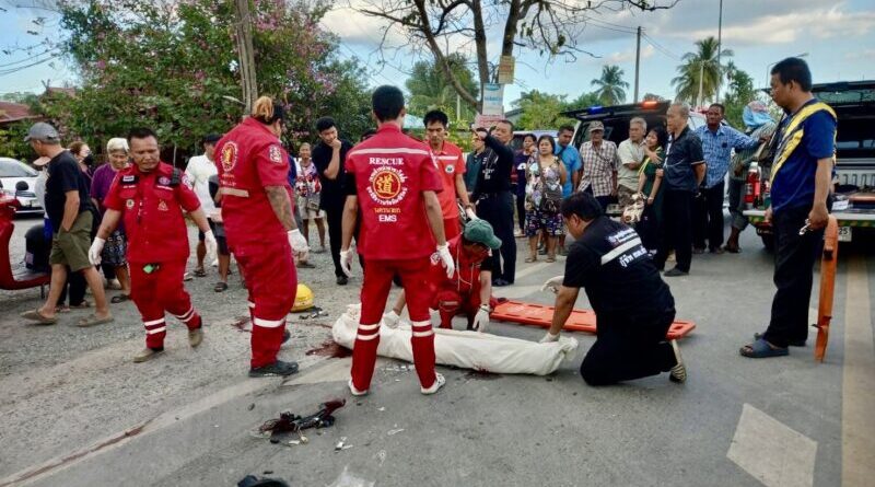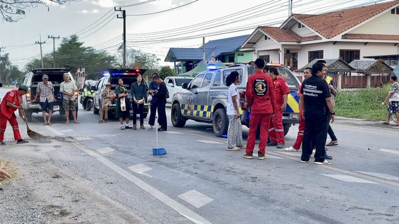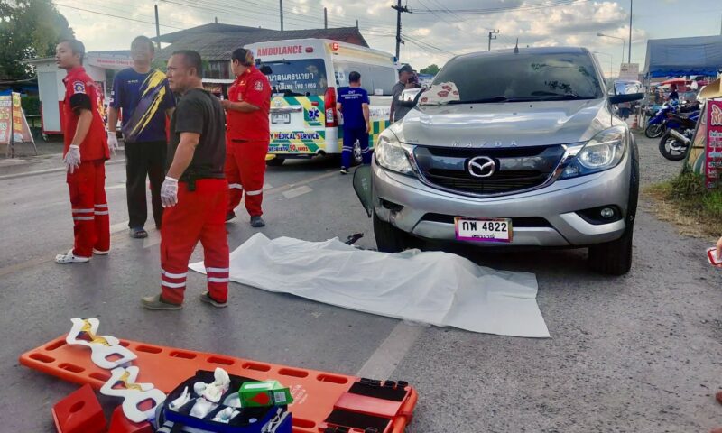 สลดตาวัย 83 ปี จะเลี้ยวจอดรถเพื่อจะเดินไปซื้อของในตลาดนัด ถูกรถกระบะวิ่งสวนทางเสยเข้าเต็มแรงลากไถลกว่า 20 เมตร เสียชีวิตคาที่
