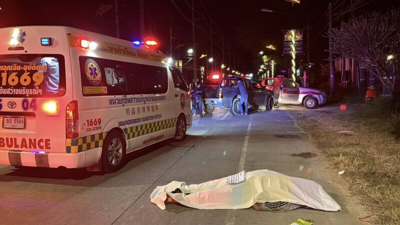 เมื่อเวลา 01.10 น. วันที่ 18 ธันวาคม 2568 ร.ต.อ.หญิง สิริยาภรณ์ คงเพชรศักดิ์ รอง สว.(สอบสวน) สภ.หนองปรือ ได้รับแจ้งมีอุบัติเหตุรถจักรยานยนต์เสียหลักพุ่งชนเทรลเลอร์ มีผู้เสียชีวิต เหตุเกิดบนถนนเลียบขอบอ่างเก็บน้ำมาบประชัน บริเวณวัดเขาโพธิ์ทอง ต.โป่ง อ.บางละมุง จ.ชลบุรี หลังรับแจ้งจึงประสานกำลัง เจ้าหน้าที่อาสาสมัครกู้ภัยสว่างบริบูรณ์ธรรมสถานเมืองพัทยารีบไปตรวจสอบที่เกิดเหตุ พบรถจักรยานยนต์ ยามาฮ่า แอโรซ์ สีดำ ทะเบียน 4 กศ 1933 ชลบุรี ล้มคว่ำได้รับความเสียหายอยู่กลางถนน ห่างออกไปประมาณ 10 เมตร พบร่างผู้เสียชีวิตเป็น ชายชาวต่างชาติ สัญชาติฮอลแลนด์ อายุประมาณ 50-55 ปี รูปร่างท้วม สวมเสื้อกันหนาวสีขาวคาดดำ กางเกงขาสั้นสีดำ เจ้าหน้าที่กู้ภัยฯ ปั๊มหัวใจเพื่อยื้อชีวิต แต่ผู้ได้รับบาดเจ็บทนพิษบาดแผลไม่ไหวเสียชีวิตในเวลาต่อมา ก่อนที่เจ้าหน้าที่จะใช้ผ้าขาวคลุมร่าง พร้อมกันพื้นที่ไม่ให้ผู้ไม่เกี่ยวข้องเข้าใกล้ ตรวจสอบยังพบรถกระบะจอดอยู่ข้างทาง โดยมีชุดลากพ่วงด้านท้าย ที่ยางล้อหลังของตัวพ่วงท้าย มีร่องรอยถูกเฉี่ยวชนจนยางแตก คาดว่าเป็นจุดที่รถจักรยานยนต์พุ่งชน