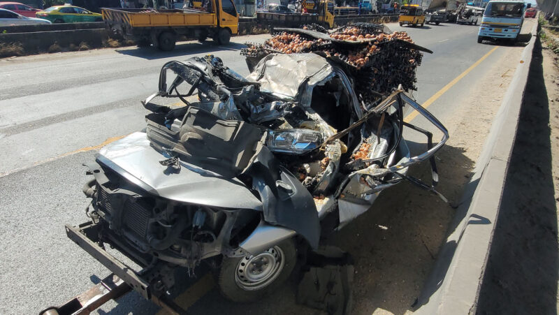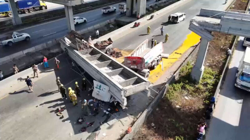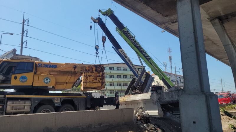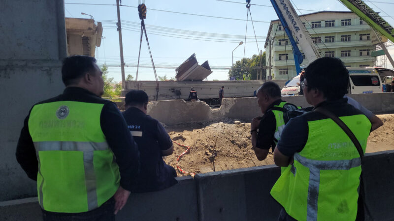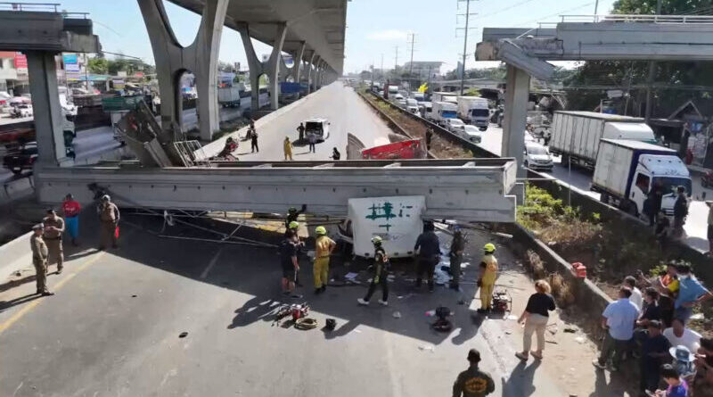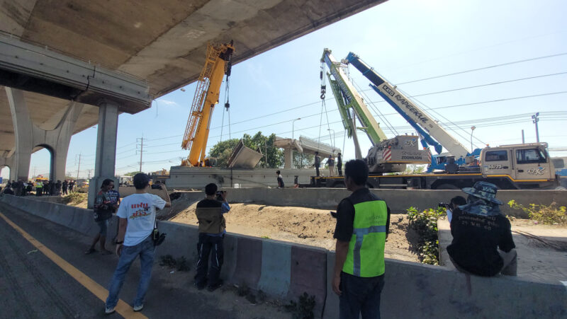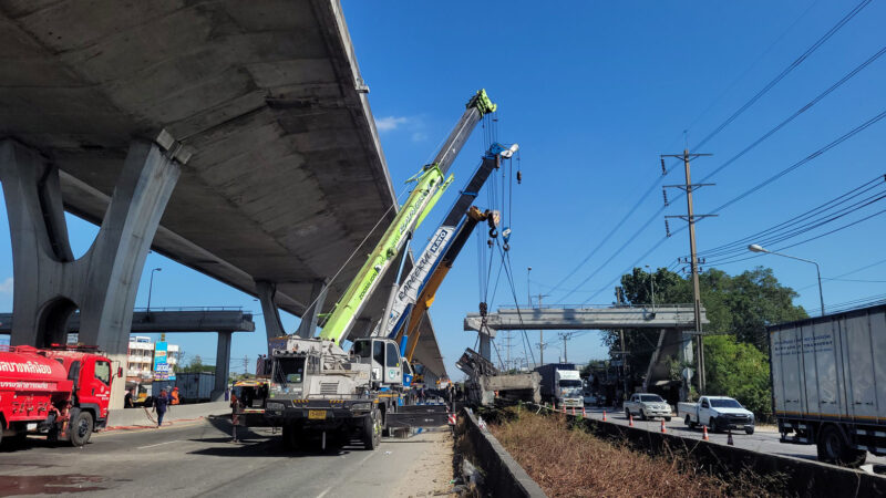 ข่าวคืบหน้า บรรทุกเกี่ยวคานสะพานลอยถล่มทับรถบนถนนบางนา-ตราด