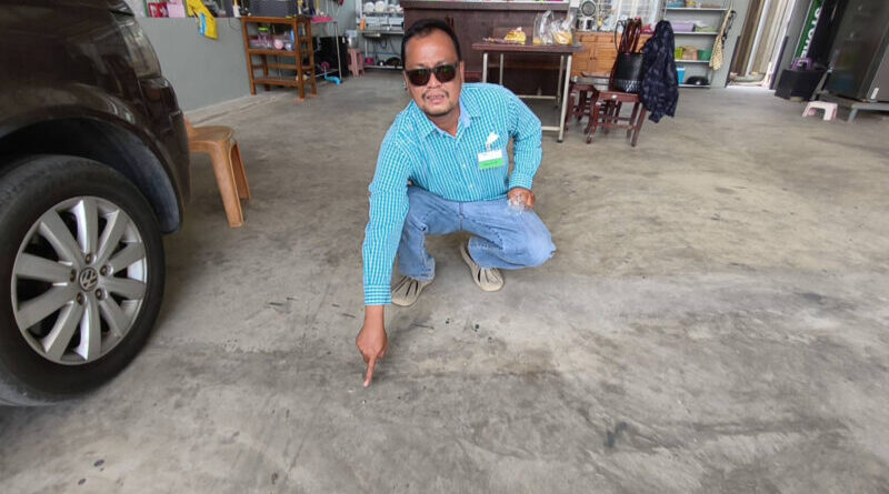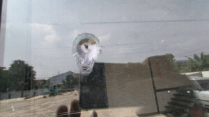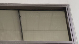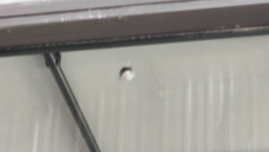 ทีมข่าวเราจึงเดินทางลงพื้นที่ตรวจสอบ พบเป็นบ้านพักอาศัย 2 ชั้น โดยนายเสนีย์ อายุ 36 ปี เจ้าของบ้าน พาทีมข่าวเราตรวจดูร่องรอยความเสียหายบริเวณกระจกหน้าต่างชั้นล่าง ซึ่งมีรอยกระสุนทะลุเป็นรู ขนาดเส้นผ่าศูนย์กลางประมาณ 2 มิลลิเมตร อยู่ในระดับความสูงจากพื้นราว 1 เมตร คาดว่าถูกยิงมาจากฝั่งตรงข้ามบ้าน