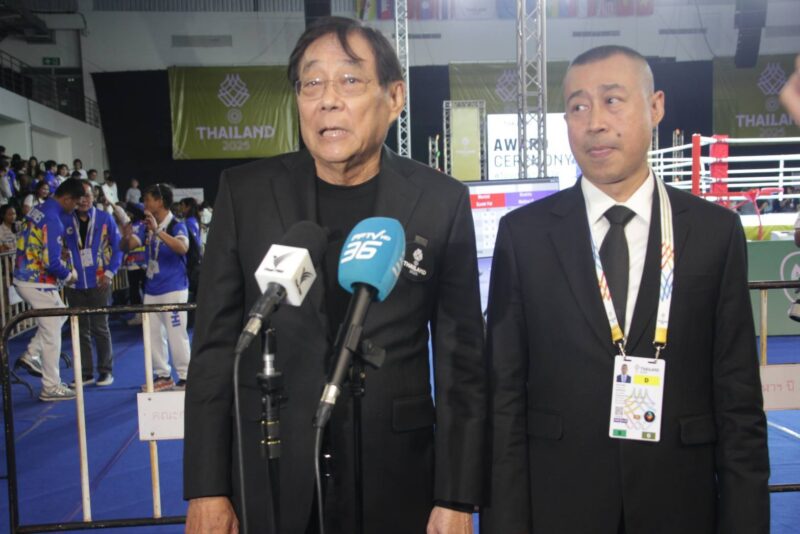 การแข่งขันมวยสากล ซีเกมส์ ที่อาคารเฉลิมราชสุดากีฬาสถาน CU สปอร์ต คอมเพล็กซ์ ชั้น 4 จุฬาลงกรณ์มหาวิทยาลัย โดยมี นายพิชัย ชุณหวชิร นายกสมาคมกีฬามวบสากลแห่งประเทศไทยพร้อมด้วย พล.ต.ท.ชัยวัฒน์ โชติมา เลขาธิการสมาคมฯและดร.ก้องศักด ยอดมณี ผู้ว่าการกีฬาแห่งประเทศไทยเข้ามาให้กำลังใจนักกีฬาในสนาม เมื่อวันที่ 19 ธ.ค.
