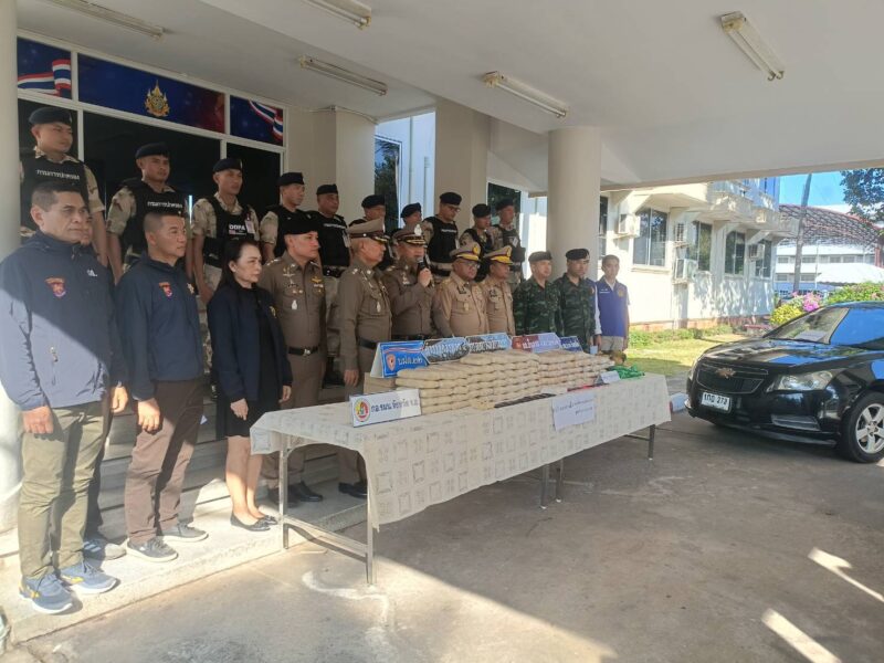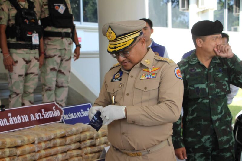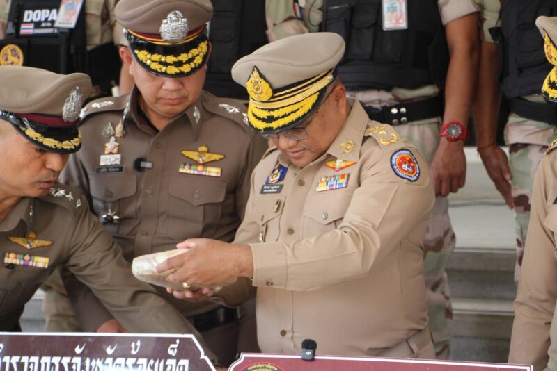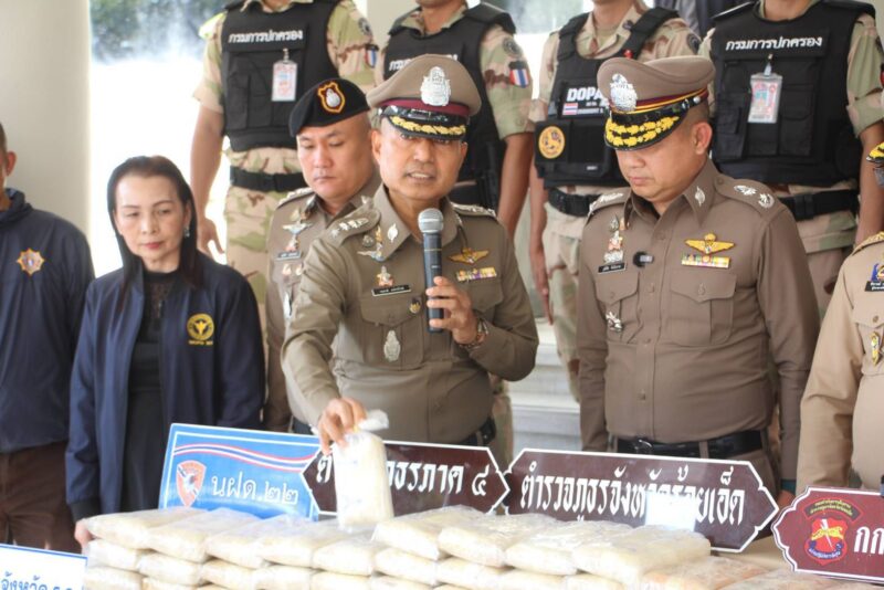 รวมถึงผู้แทนจากกองทัพ ภาคราชการ และหน่วยงานความมั่นคง ร่วมกันแถลงข่าวผลการจับกุมเครือข่ายลักลอบลำเลียงยาเสพติดรายสำคัญ ตามนโยบายของรัฐบาล กระทรวงมหาดไทย และสำนักงานตำรวจแห่งชาติ ในการแก้ไขปัญหายาเสพติดอย่างจริงจังและต่อเนื่อง