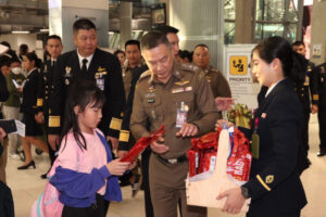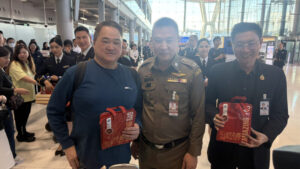 โอกาสนี้ เจ้าหน้าที่ตรวจคนเข้าเมืองได้ร่วมต้อนรับนักท่องเที่ยวขาเข้าจากต่างประเทศ พร้อมมอบของที่ระลึก “Amazing Bag” ซึ่งบรรจุของที่ระลึกที่สะท้อนอัตลักษณ์และเสน่ห์ความเป็นไทย เพื่อสร้างความประทับใจตั้งแต่ก้าวแรกที่นักท่องเที่ยวเดินทางถึงประเทศไทย