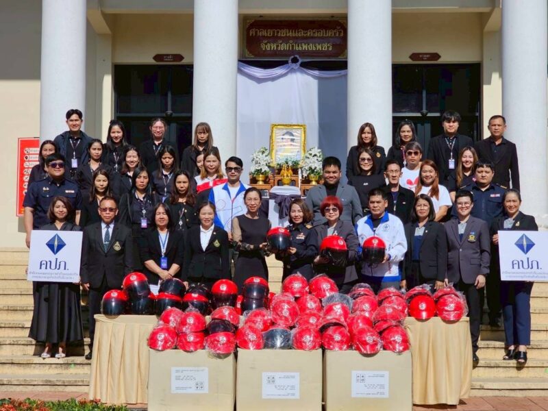 วันจันทร์ที่ ๒๒ ธันวาคม ๒๕๖๘ เวลา ๑๔ นาฬิกา นางสาวณัฐพร เดชาวุธ ผู้พิพากษาหัวหน้าศาลเยาวชนและครอบครัวจังหวัดกำแพงเพชร รับมอบหมวกนิรภัย (หมวกกันน็อค) จำนวน ๘๐ ใบ ของบริษัท เอไอเอ จำกัด จากนางสาวขวัญเรือน สุขเกษม ผู้อำนวยการสำนักงานคณะกรรมการกำกับและส่งเสริมการประกอบธุรกิจประกันภัยจังหวัดกำแพงเพชร (คปภ.) นางภัสนันท์ เมธประสพสันต์ ประธานชมรมประกันภัยจังหวัดกำแพงเพชร นายโชติอนันต์ ปิติเมธธนพงศ์ ประธานสมาคมตัวแทนประกันชีวิตและที่ปรึกษาการเงินจังหวัดกำแพงเพชร และคณะ เพื่อใช้ประโยชน์ในกิจกรรมโครงการ “ศาลเยาวชนห่วงใย ร่วมใจชุมชน ป้องกันการกระทำความผิดในเด็กและเยาวชนจังหวัดกำแพงเพชร” ณ ศาลเยาวชนและครอบครัวจังหวัดกำแพงเพชร ถนนปิ่นดำริห์ ตำบลในเมือง อำเภอเมืองกำแพงเพชร จังหวัดกำแพงเพชร